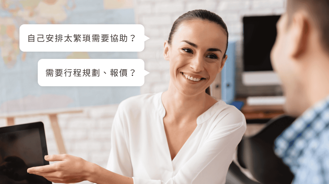 先了解您的旅行偏好、行程需求,再幫您設計整套客製化行程、預訂好所需的各種商品/票券