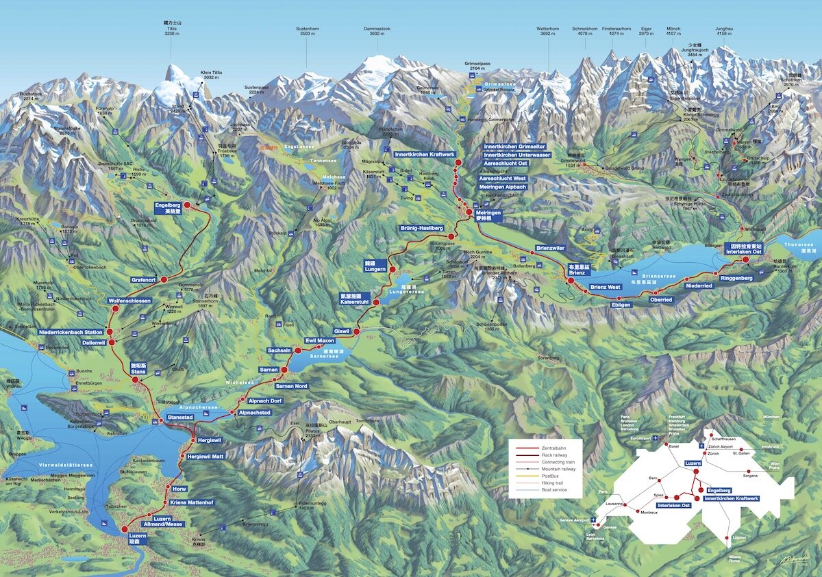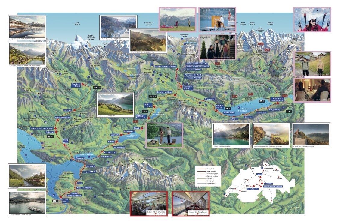 Luzern Interlaken Express Route Map with photo point and crash landing on you locations