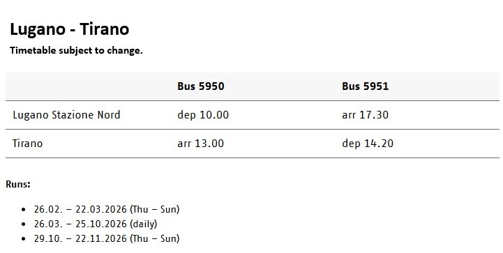 • Bus : Tirano - Lugano,around 3 hr 10 min