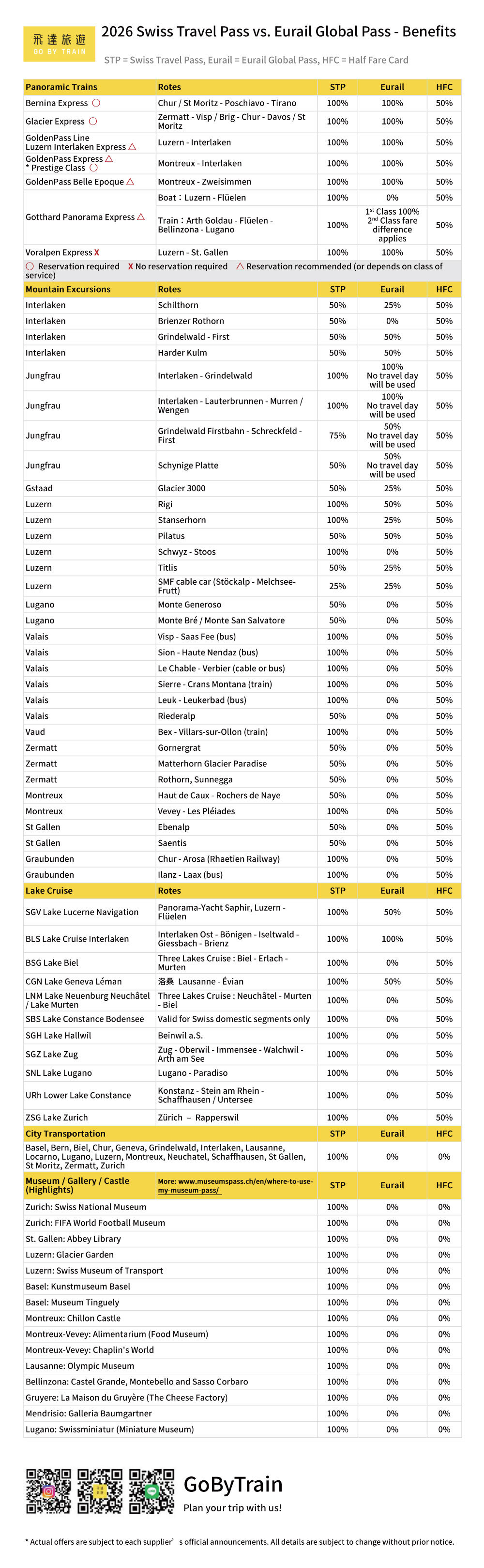 You can also evaluate the discounts offered by each pass based on the places you plan to visit within Switzerland.