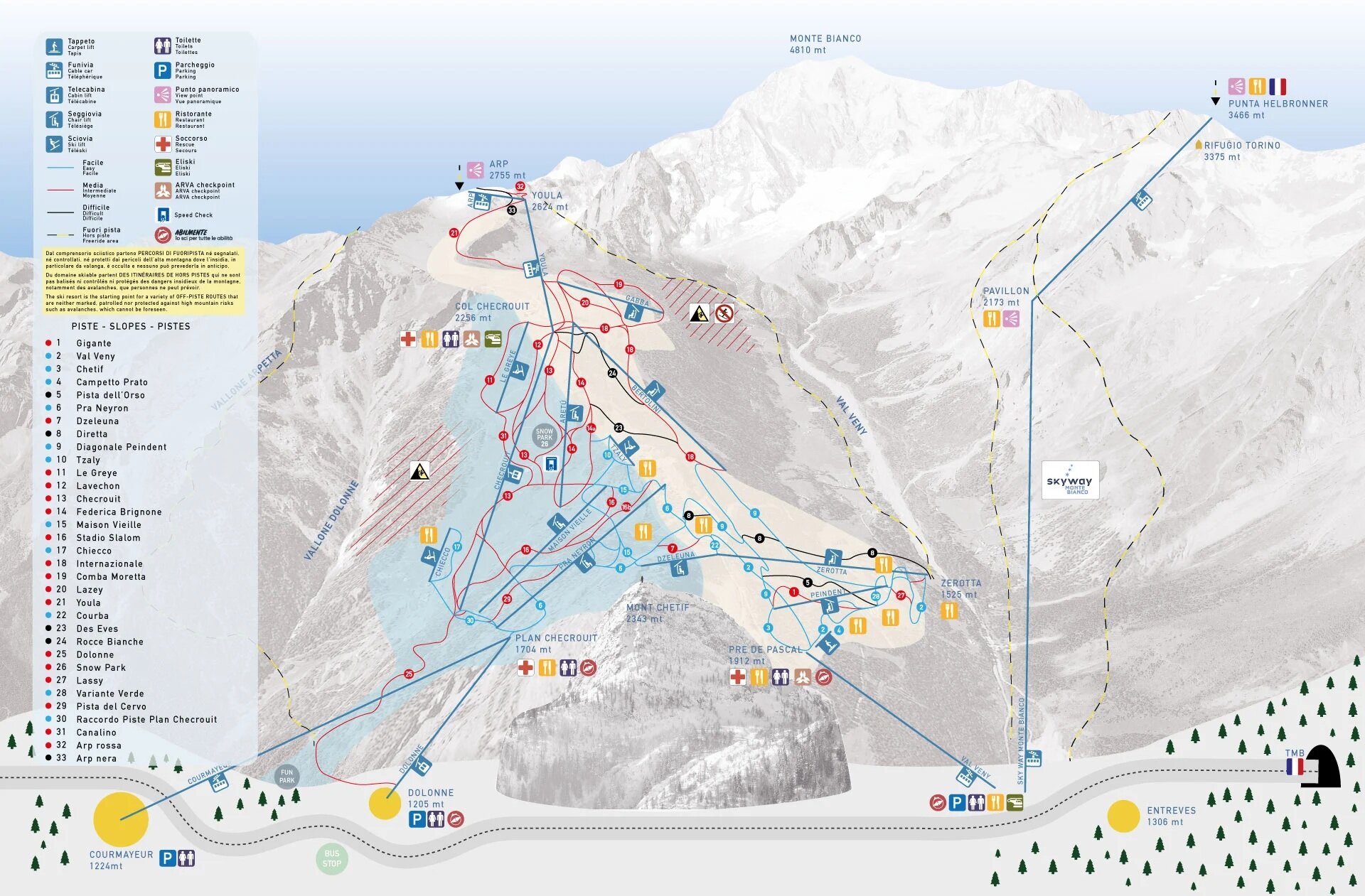- 除了 Brévent-Flégère 之外,各滑雪場與景點之間互不相連。