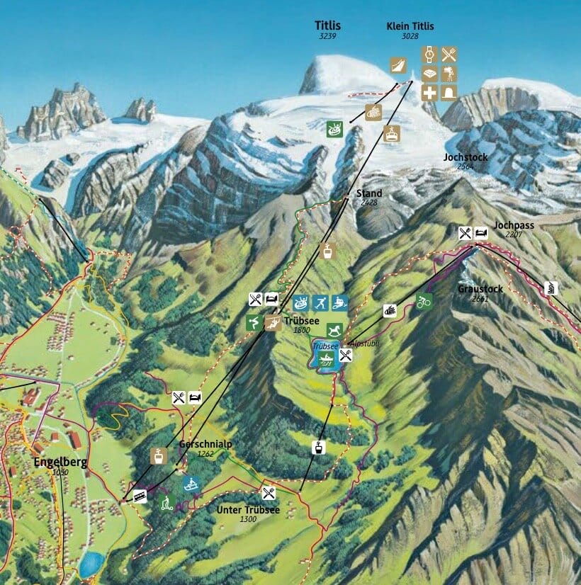 徒步健行 - Titlis 地區與 Trübsee(中途站)有多條登山與健行步道。適合初學者與家庭旅客。