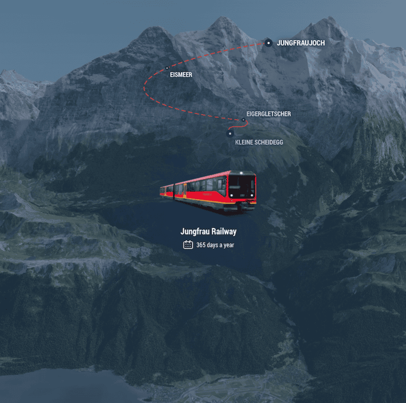 可以!有包含在行程的來回票裡面,這台叫做 Jungfrau Bahn,行駛於 Kleine Scheidegg – Eigergletscher – Eismeer – Jungfraujoch 少女峰頂