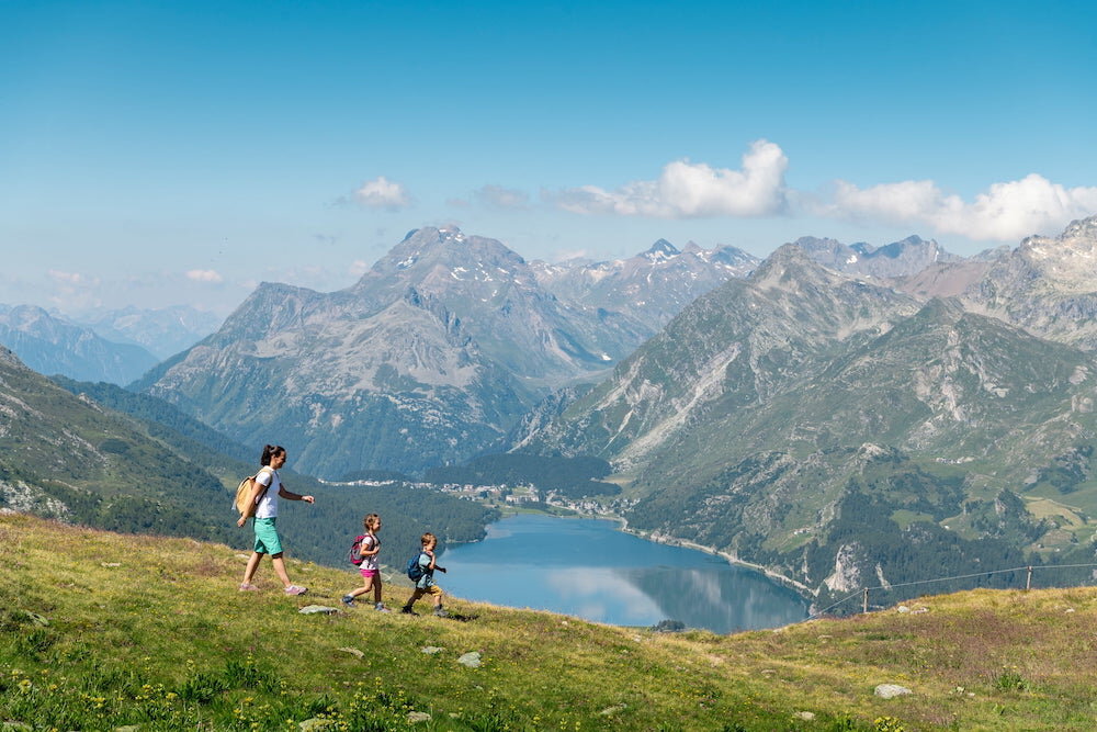Furtschellas 就是聖莫里茲知名六湖健行 Water Trail / Wasserweg 的所在地!全程約 6km 爬升 330m 下降 330m 約需三小時。 從海拔 2,312m 的富切拉斯車站出發約 2.5hrs 的環狀健行路線可以帶你走完六個山中湖泊:Leijn Cristal、Lejin Magnetit、Lejin Malachit、Lejin Rhodonit、Lejin S-chaglia 、Lejin Epidot。這個路線非常適合家庭一起走,爬升只有 333m、全長約 5km。
