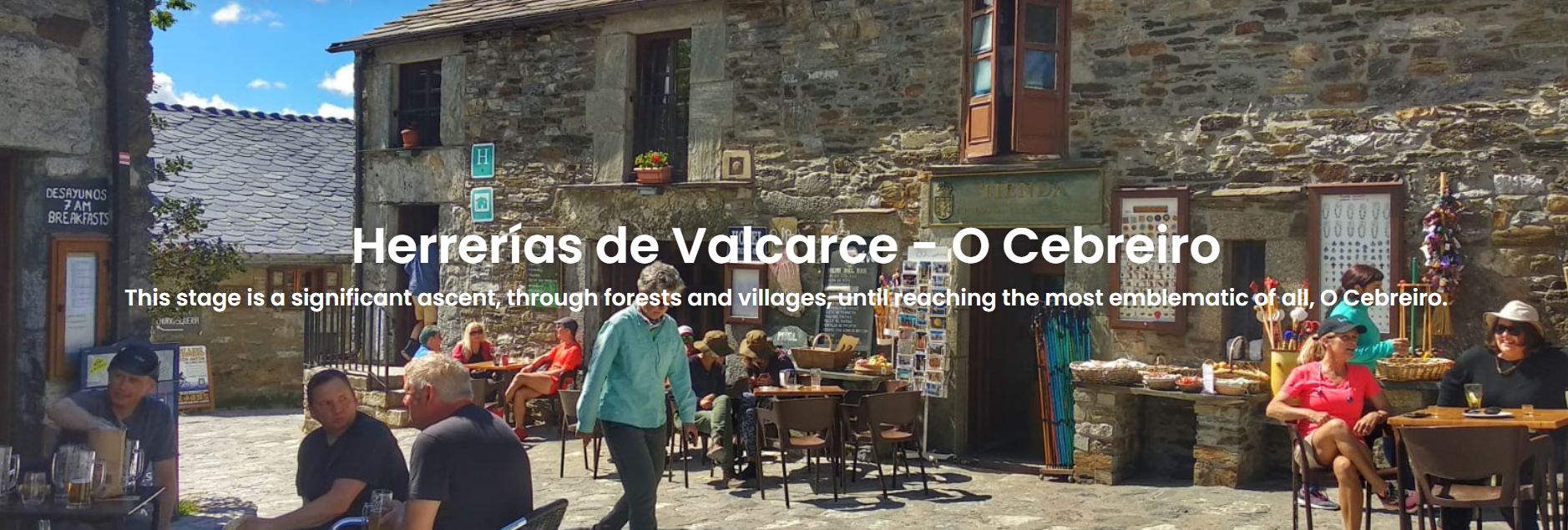 這一段從 Herrerías 或 Ambasmestas 前往 O Cebreiro,是整條朝聖之路中最具挑戰但也最壯麗的一段。路線持續上坡,攀登進入加利西亞(Galicia)地區,沿途山巒層疊、景色壯闊。最終抵達坐落於山頂的中世紀石造村莊 O Cebreiro,這裡以傳統茅草屋與壯觀山景聞名,是朝聖者心中象徵性的轉折點。