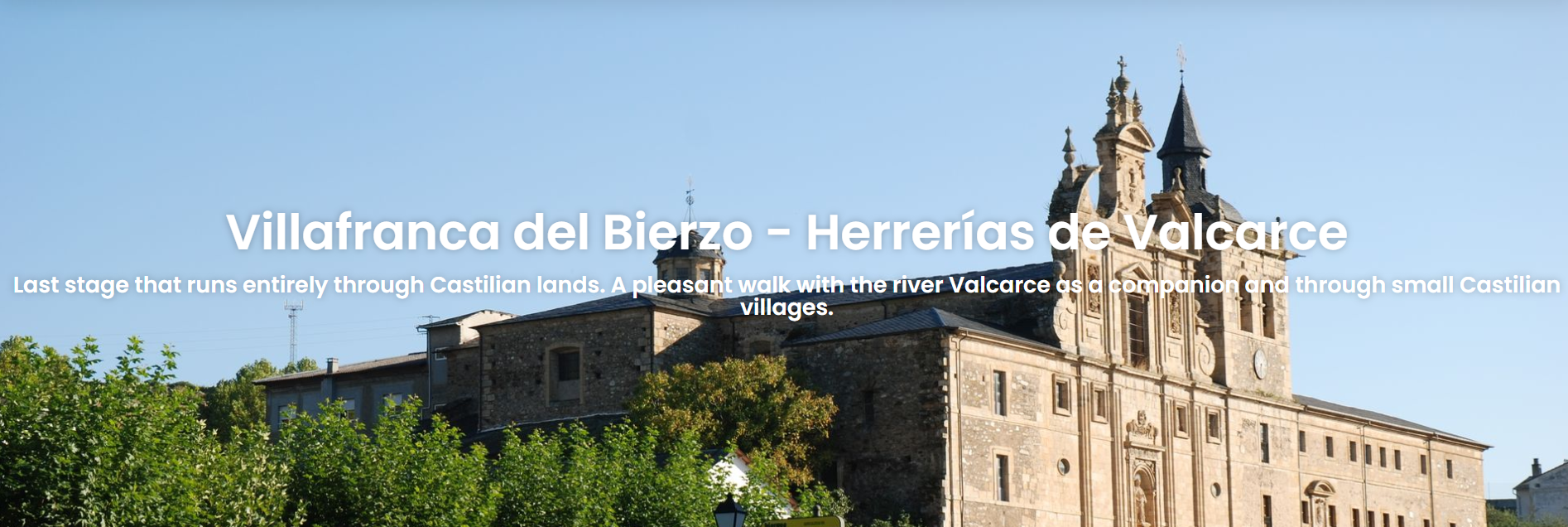 這一段從 Molinaseca 前往 Villafranca del Bierzo 的路線風光秀麗,途中經過歷史悠久的城市 Ponferrada,可欣賞著名的 聖殿騎士城堡(Templar Castle)。之後路線穿越比埃爾索(Bierzo)山谷地區,沿途是葡萄園、果樹與寧靜村莊交織的田園景色,最終抵達以浪漫石橋與古老教堂聞名的 Villafranca del Bierzo 小鎮。
