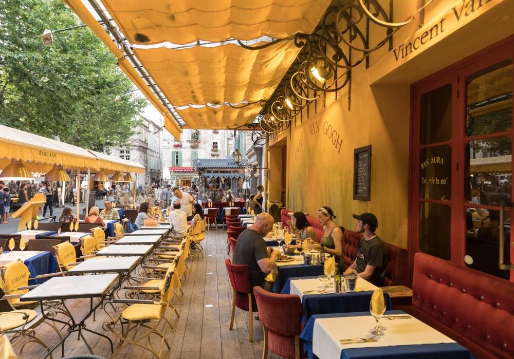 其中星空下的咖啡屋-梵谷咖啡館 Cafe De Van Gogh 曾經遭逢戰爭摧殘,一度殘破不堪,然而後來卻由當地人依照梵谷的畫作重建,所以才得以完整保存。夜間咖啡館 及 夜晚露天咖啡座 這兩幅畫所描繪的場景就是位在現今法國的 亞爾 梵谷的餐廳 Le Café Van Gogh 的店內及店外的場景,而梵谷為了表達作畫當下的情感,畫中的顏色與實際場景顏色其實有些不同。如果能在有星光的夜晚漫步隆河畔,也許你也能看見 1888 年時,這位天才畫家所見的景色!