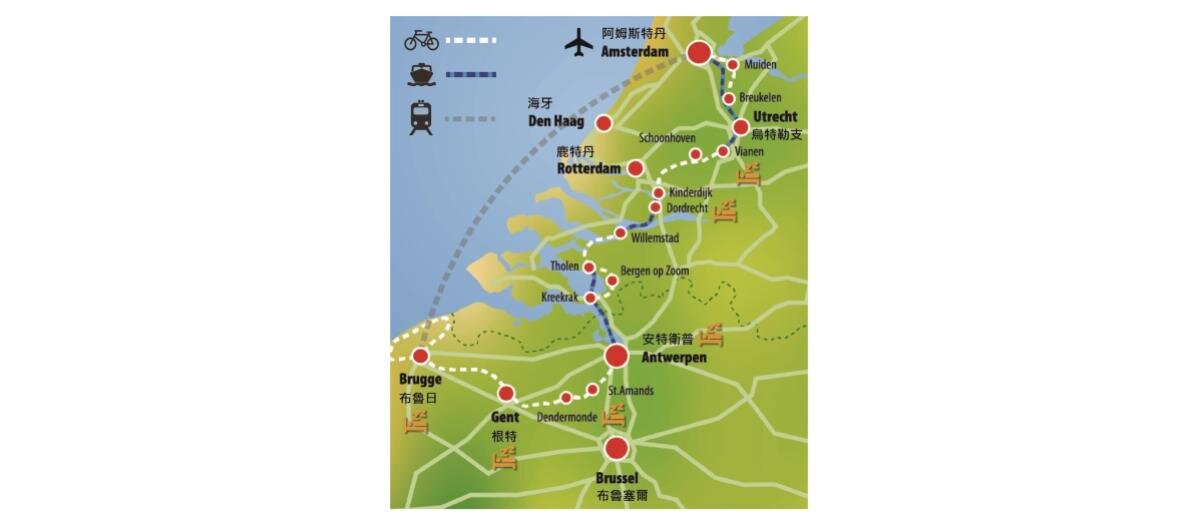 從荷蘭阿姆斯特丹 Amsterdam 啟程,途經小孩堤防風車群、比利時時尚之都安特衛普 Amtwerp、河畔小鎮 St Amands、文化古城根特 Ghent,最後抵達童話般的布魯日 Bruges。 無需擔心交通、住宿或行李,自行車裝備也一應俱全,讓您專心享受這場動靜皆宜、的歐洲假期。