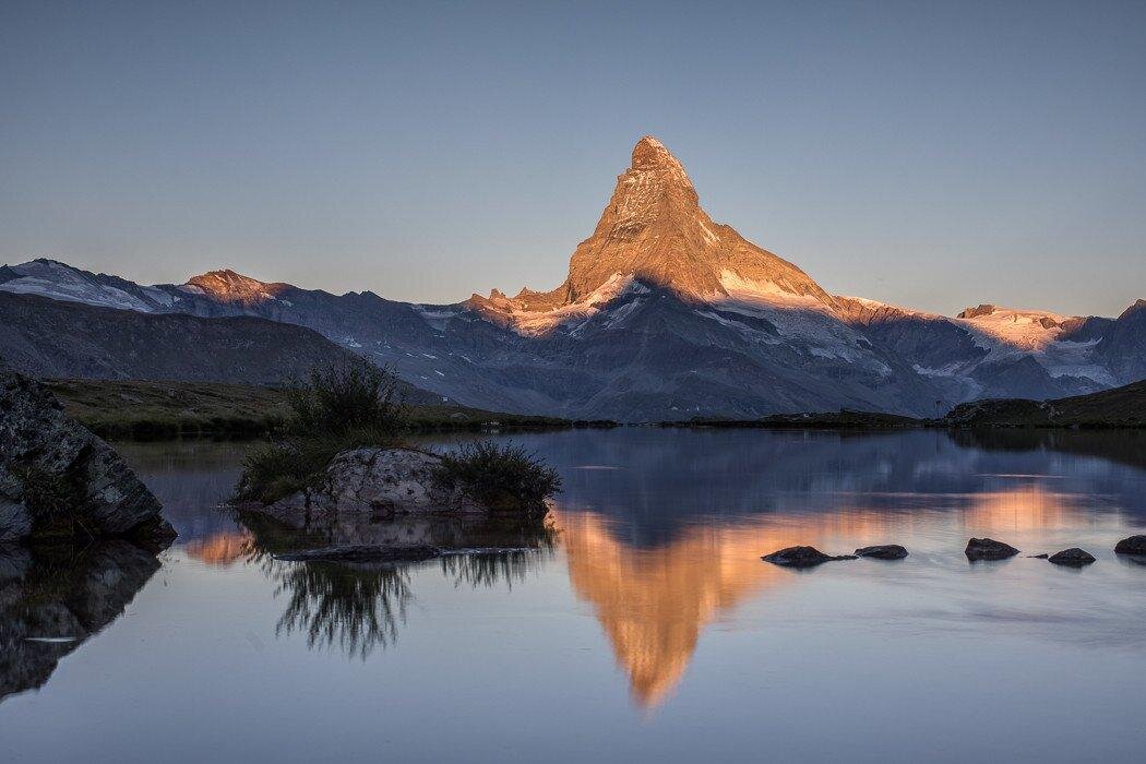 在 Rotenboden 下車步行 10 分鐘即可抵達下圖 Riffelsee 拍下金黃色的馬特洪峰。此班次不包含在行程中,需另外加購且只有七八月有喔 !