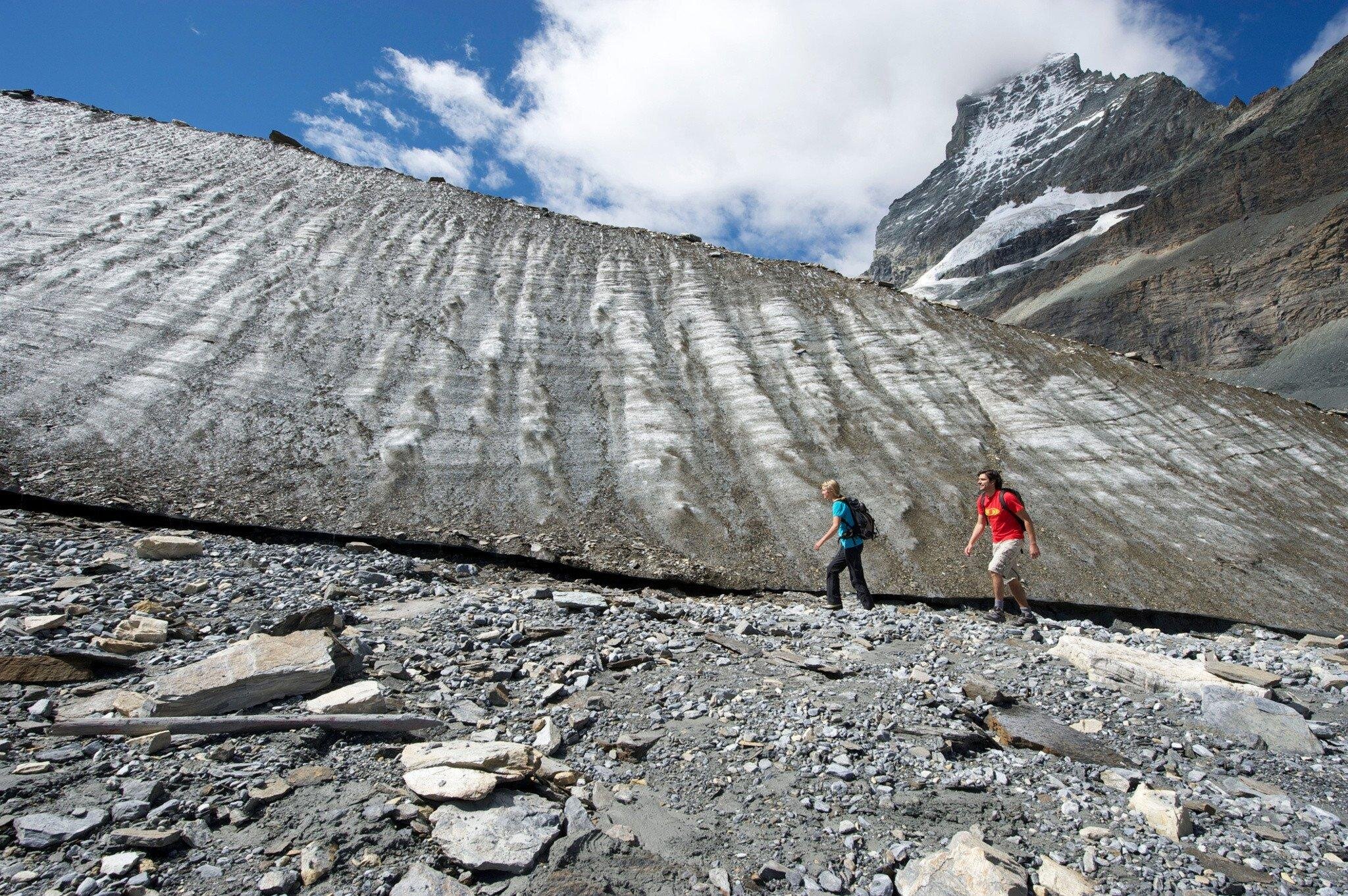馬特洪峰冰川小徑 Glacier Trail / 2hrs / 難 / 6.5km。從 Troekener Steg 2,939m 纜車站開始進行馬特洪峰冰川小徑 Glacier Trail 的白色奇幻旅行。出發點 Trockener Steg (2,939 m) 結束點 Schwarzsee (2,583 m)