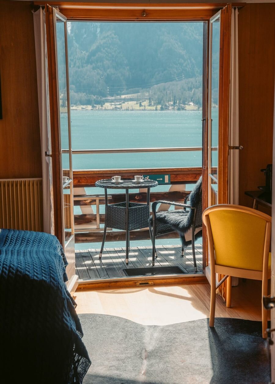 三星級飯店,從因特拉肯搭火車六站約 21 分鐘即可抵達,客房以溫馨鄉村風為主,並擁有俯瞰湖泊的全景。