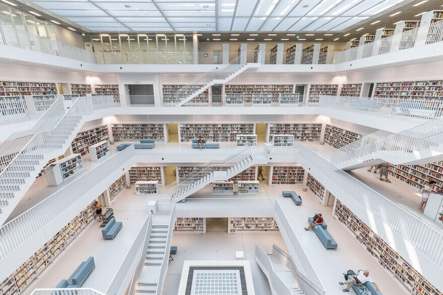 這是現代建築愛好者的朝聖地。內部是一片純白、中空的極簡幾何空間,被譽為「全世界最美的圖書館之一」。