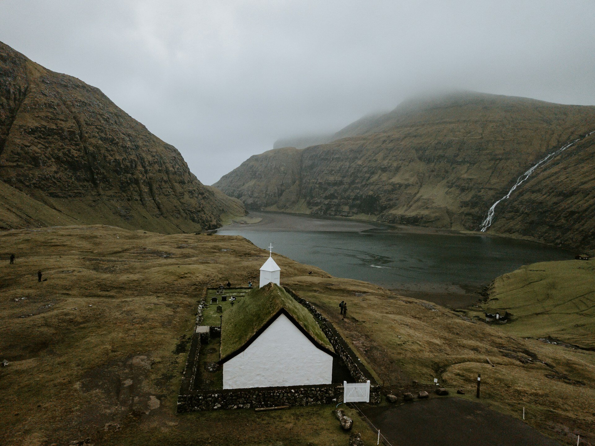 這裡被譽為「法羅群島最美村落」,位於一個被高山環繞的圓形山谷中。退潮時,下方的潟湖會露出寬闊的沙灘,遊客可以一路走到大海出口。這裡的建築亮點是具有 160 年歷史的 Dúvugarðar 農場(現為博物館)與白牆黑頂的教堂。整個村莊安靜得彷彿時間停滯,只有遠處瀑布的細微水聲,展現出極致的靜謐之美。