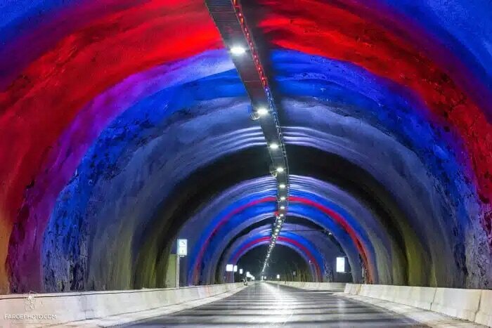 為了連接被峽灣與高山隔開的 18 座島嶼,島上建立了超過 20 座隧道,讓全島 90% 的居民得以緊密連結。其中最著名的 Eysturoyartunnilin 隧道擁有世界第一座海底圓環,圓環內還設有在地藝術家的光影創作。透過隧道、橋樑與渡輪,18 座島嶼中有 9 座可輕鬆開車抵達。