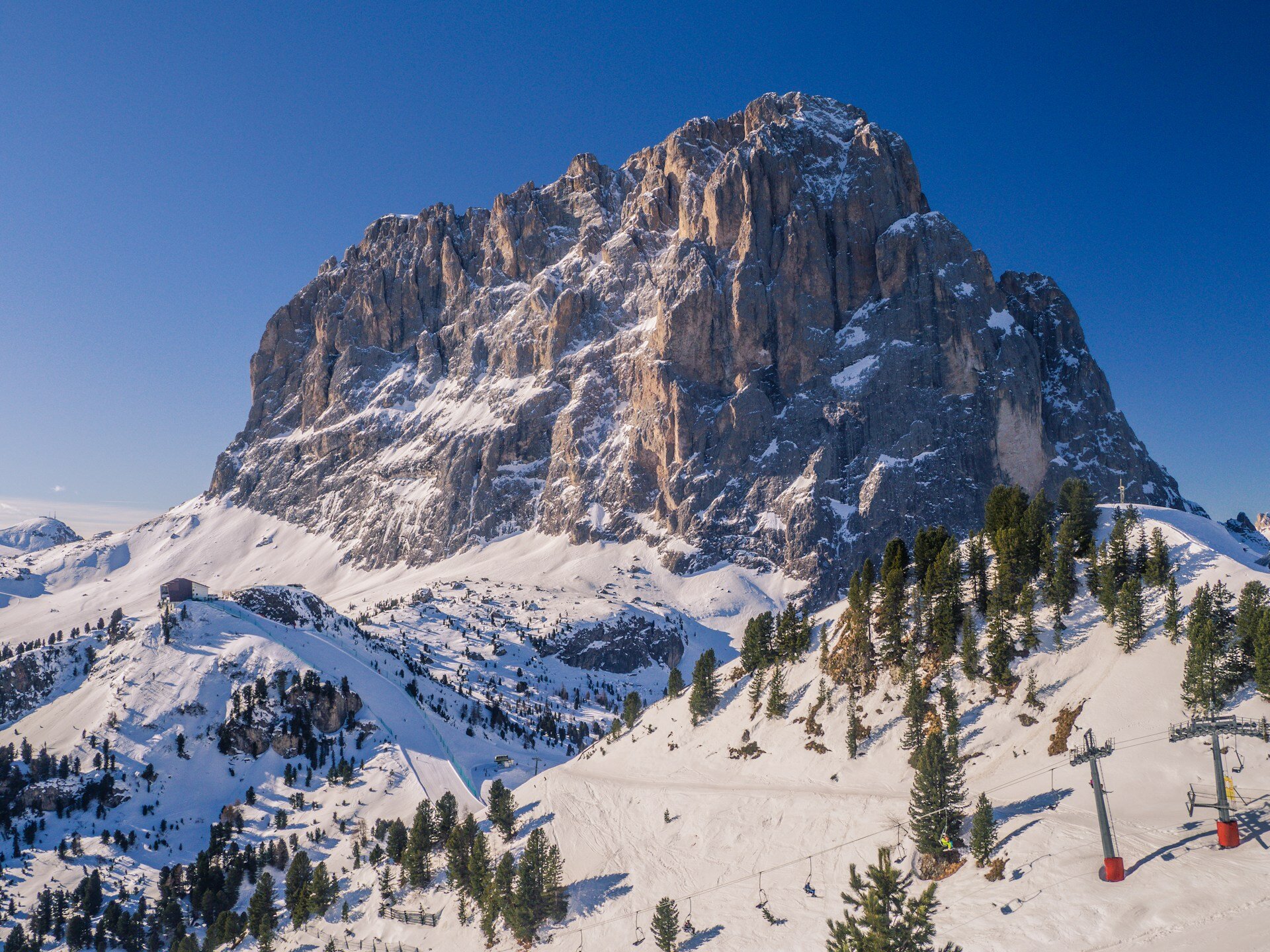 冬天,你可以用滑雪與纜車完成 Sellaronda 環線,直通 2026 四年一度的世界大賽雪場 Cortina;
