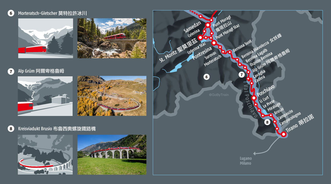 每年的五月中至十月,這班懷舊列車都有營運,持有行程內含的火車通行證就可以搭乘!往返於達沃斯 Davos 與菲利蘇爾 Filisur 的 1920 年代歷史火車,每天兩班。 車程約 40 分鐘、穿越崎嶇浪漫的 Zügen Gorge、越過著名的 Wiesen 高架橋。Filisur 也是 Landwasser 高架橋的所在地。這座高架橋標誌著著名的雷蒂亞鐵路 (RhB) Albula Line 的中心地帶,是聯合國教科文組織世界遺產。 懷舊的鐵路客車分為普通艙與頭等艙,普通艙就是復古照片中常會看到的木製、無坐墊車廂,頭等艙則是幾乎哈利波特風格般的包廂式車廂。其中一些車廂已有 100 多年的歷史,另外還有露天的開放式車廂。這班列車將由傳說中的「鱷魚車頭」Ge 6/6 414/415 牽引。