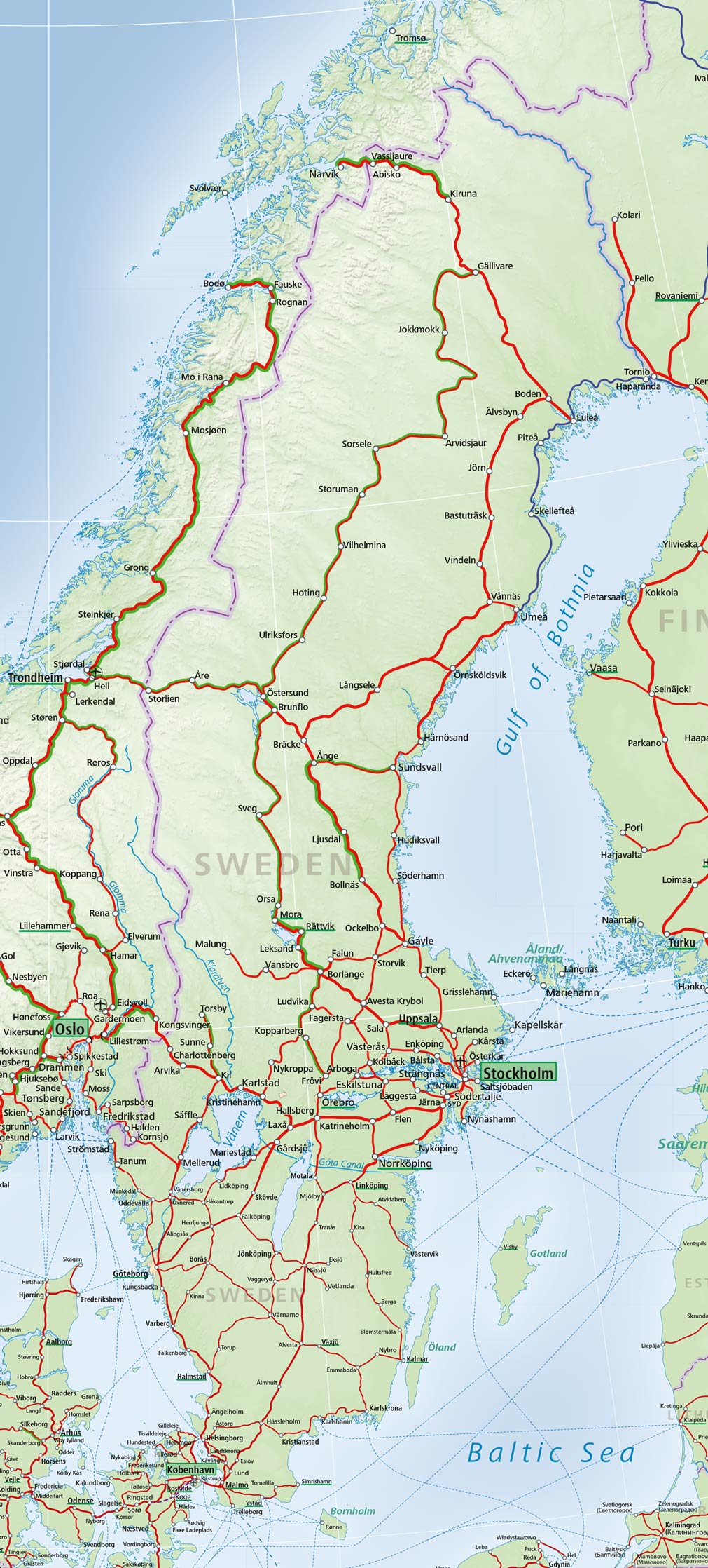 瑞典火車通行證適用於搭乘國家鐵路公司 SJ,也適用於下列私人鐵路: STockholm 和 Oslo 之間的跨境列車、直達 SJ 往返哥本哈根和哥本哈根機場的火車、Malmö和德國柏林之間的直達列車、瑞典與挪威 Narvik 之間的SJ直達列車、Arlanda Express 斯德哥爾摩機場快線、Inlandsbanan 瑞典內陸鐵路、Norrtåg 厄勒海峽列車、在 Värmlandstrafik 韋姆蘭的當地火車服務、瑞典南部城市 Skåne, Blekinge, Kalmar, Halland, Västra Götaland 和 Jönköping 延雪平的區域列車,包含 Kustpilen, Krösatågen, Västtåg 和 Öresundståg,可於通行證使用天數效期內無限次搭乘火車但上述路線票價不含訂位、餐飲及臥舖訂位費用。