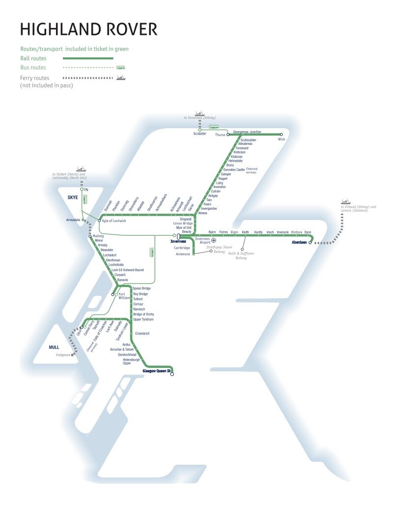 Highland 高地限定:印威納斯 Inverness, 亞伯丁 Aberdeen, 格拉斯哥 Glasgow, 威廉要塞 Fort William, 馬雷格 Mallaig, 天空島入口 Kyle of Lochalsh, 瑟索 Thurso, 奧班 Oban