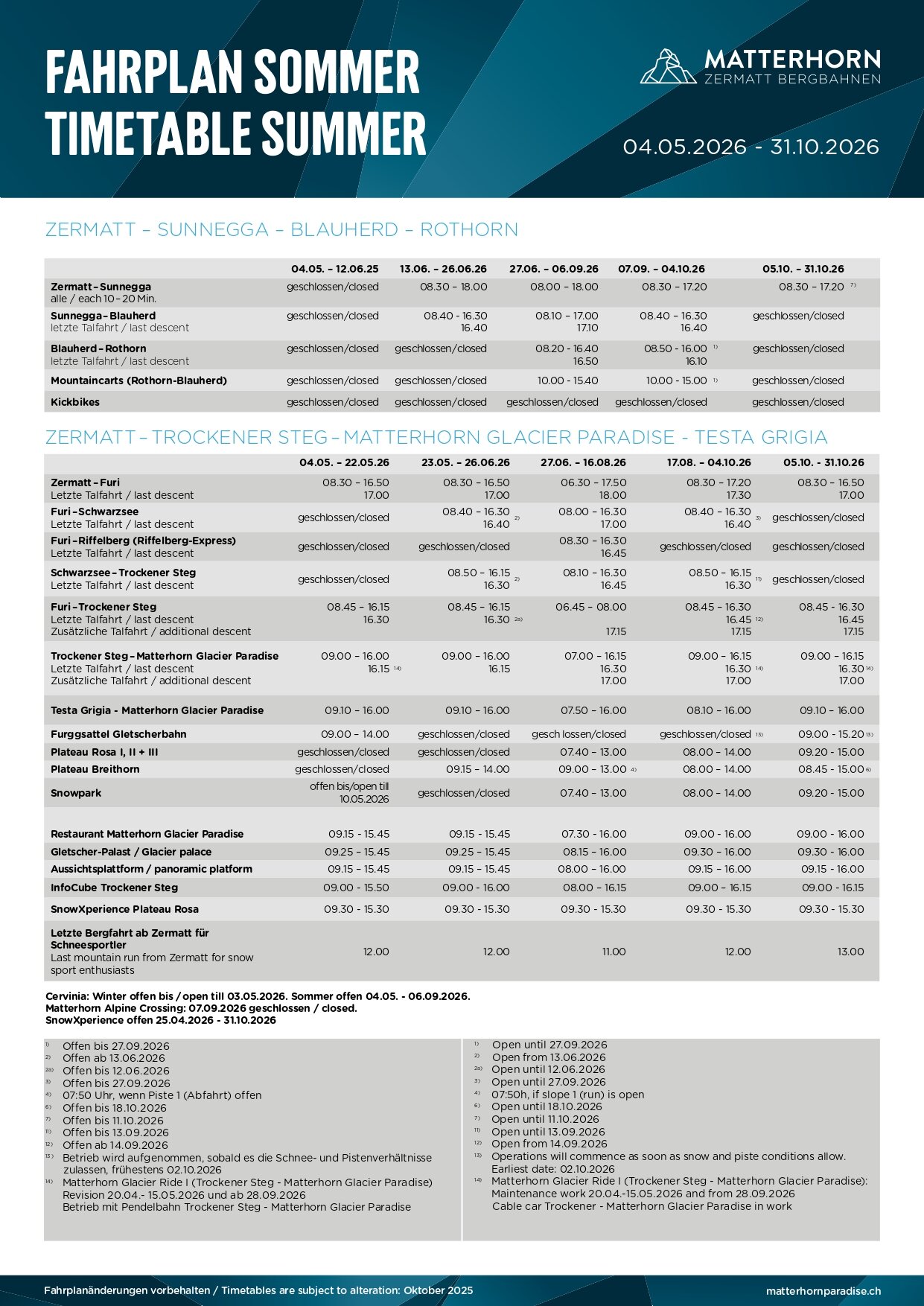 卡片可以在策馬特小鎮的葛內拉特 Gornergrat 或洛特洪峰 Rothorn 或冰川天堂 Matterhorn Glacier Paradise 底站(base station)繳回。